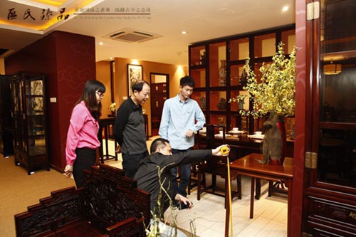 在區氏,銷售員并不像“導購”,而更像一個“導游”,她們很少推銷產品,而是帶領客戶參觀展廳,為其訴說蘊含在每件家具中的工藝和故事。“紅木家具銷售不是能說會道就行了,關鍵還是要有素養,要有紅木文化基礎,再加上好的修養,如耐性、專注等才能成為一個好銷售。我們不是為了賣家具而賣家具,而是為了多交朋友。客戶過來了,就像老朋友一樣,坐一坐,喝喝茶,有好東西一起分享,看中了再買。區氏的客戶中很多都是老客戶了,有買了一件家具,隔了幾年再過來買的,他們除了享受家具帶來的樂趣外,也會很開心每次過來都能找到那位第一次接待他的銷售。這么多年,新人變舊人,這些人一直都在,就像紅木家具一樣,即使多年后依舊如故,那種感覺是很奇妙的。”霞姐闡述區氏的銷售風格。