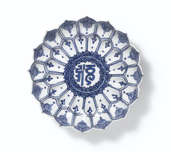 二:明萬歷青花梵文「福」字蓮瓣盤