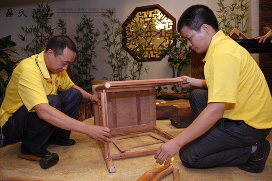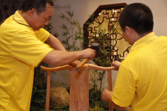 榫卯工藝因為不上膠,不打釘,非常易拆裝。如一件官帽椅,區氏臻品熟練的工匠,可以只用不到十分鐘的時間,就可以將其完全拆開或者重新組裝起來。