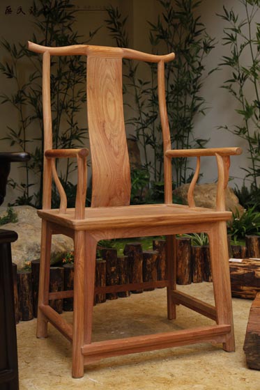 楔釘榫多用于圈椅的弧形椅圈。為了使接口堅實牢固,要把兩個圓材的一頭各做出長度相等的半圓,在半圓外的頂端做出榫舌,再把兩個半圓平面的后部與橫切面相交的轉角處開出與半圓平面齊平的橫槽,然后把兩材依平面對插,使兩材上下左右都不能活動,但卻能向相反的方向拉開,于是,又在兩材合縫處開一方孔,將一方形木楔釘進去,使接口處既不會左右晃動,又不會向兩邊拉出,達到了堅實牢固的目的。