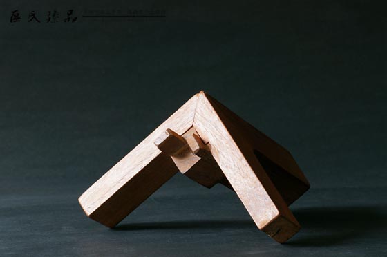 格肩榫是一橫材與豎材的結合,是在橫材兩端做出榫頭,在榫頭的外側做出45度等邊三角形斜肩,三角形斜肩緊貼榫頭,在豎材上鑿出榫窩,并在外側開出與榫頭三角形斜肩相等的豁口,正好與榫頭上的斜肩拍合。