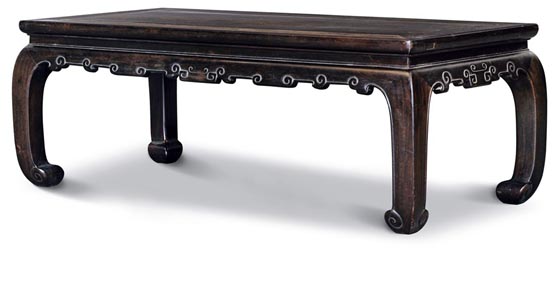 五、紫檀有束腰馬蹄足寶珠紋炕桌