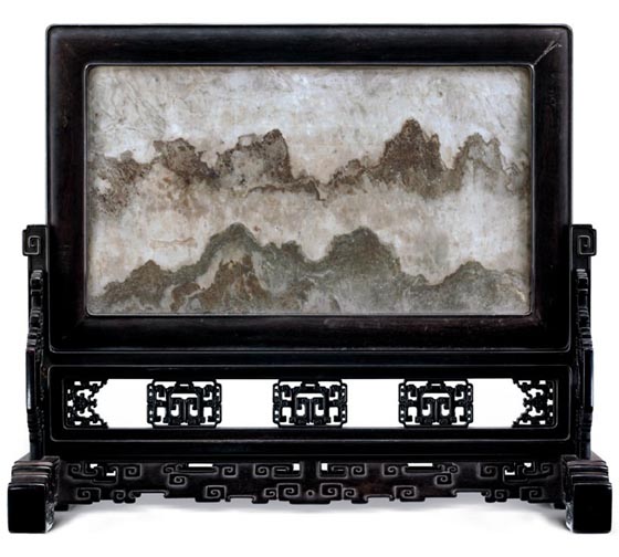 六、紫檀嵌理石大座屏