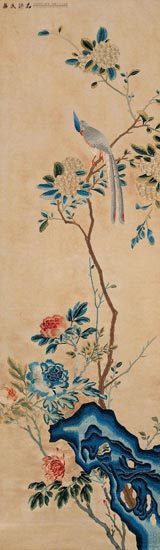 清乾隆 蘇繡繡球花綬帶鳥(niǎo)圖