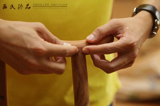 區錦澤在講解官帽椅中尖頭榫與圓頭榫的區別
