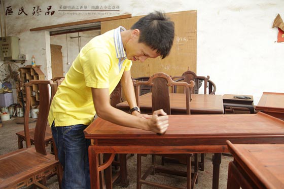 從小耳濡目染,區錦澤也深受父親對古典家具和中國傳統文化熱愛的感染,潛移默化下,對中國傳統家具萌生了“愛意”。2002年,區錦澤開始進入公司,從車間基層開始做起,熟練地掌握了紅木家具的生產工藝流程,而今子承父業,紅木家具更是已深入他的內心。“我對燈飾沒有多大的興趣,而對中國的藝術和文化比較感興趣,所以我也會堅持做家具。”區錦澤說道。