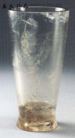 戰國水晶杯,屬于中國嚴禁出國展覽的64件國寶級文物之一,現藏于浙江省杭州市文物考古研究所。杯子高15.4厘米,敞口,斜壁,圓底,圈足外撇。素面無紋飾,透明,器表經拋光處理,器中部和底部有海綿體狀自然結晶。此杯是用優質天然水晶制成的寶用器皿,國內罕見,其制作技巧和工藝水平令人驚嘆。看到這件文物時,是不是感覺像是現代的杯子穿越到古代了一樣。