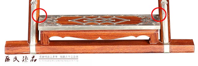 腿足相交處以銅軸銜接,腿足與底棖交圈處,以及凳面中軸和腳踏面板,均裹以銅件
