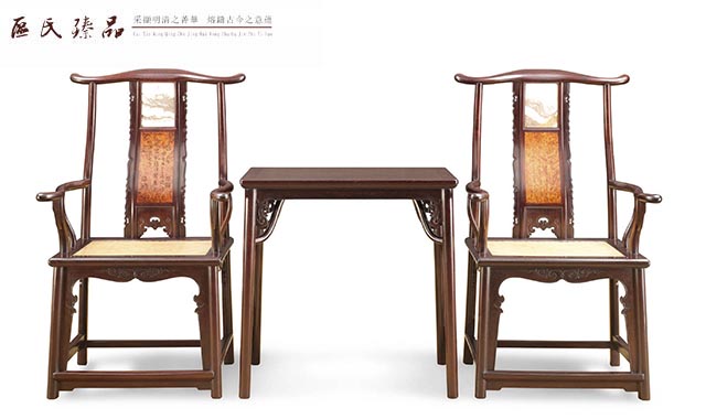 一件型好、工好的明式家具會讓人感受到一種靈動的美(配圖為區氏臻品鑲癭木刻字圓頭四出頭官帽椅)
