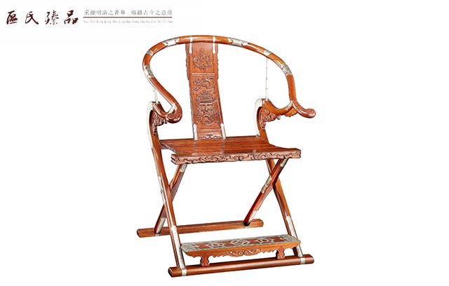 區氏臻品對于仿古家具的創新,均遵循九分傳承,一分創新的比例(配圖為區氏臻品壽字背交摺椅)