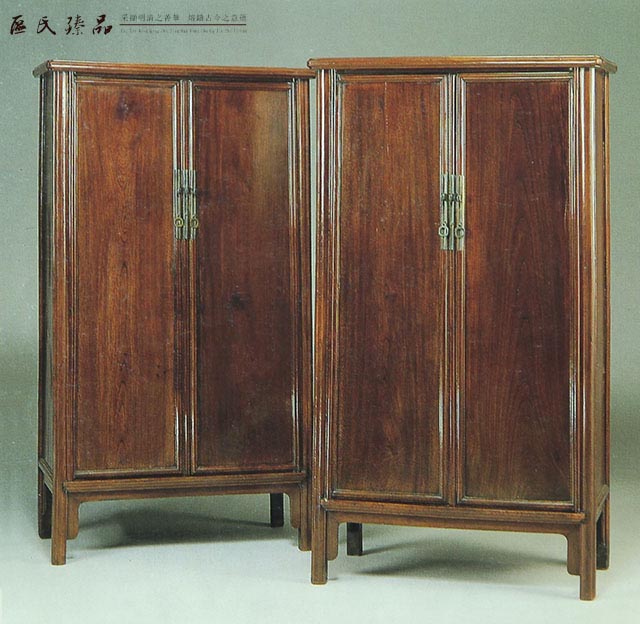 圓角木軸門柜是中國傳統家具最精巧優美的設計之一。四根柜腿自噴面的柜帽下展出,帶側角。這種“A”字形的設計賦予柜子精致優雅、平衡穩固的優點于一身。柜門上下兩端伸出門軸,納入柜身框的臼窩內,柜門開啟后可自行閉合。整體線條利落清爽,一氣呵成。成對的柜子,由于歷史的原因常常失散,故其價值往往高于單個柜。