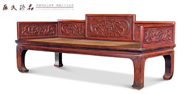 清早期 櫸木有束腰馬蹄腿螭龍紋羅漢床