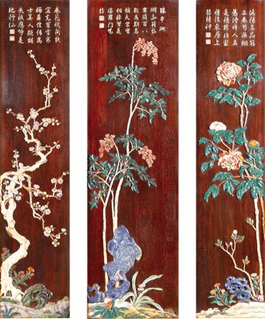 百寶嵌賞析:《小葉紫檀嵌百寶花卉九扇地座屏》